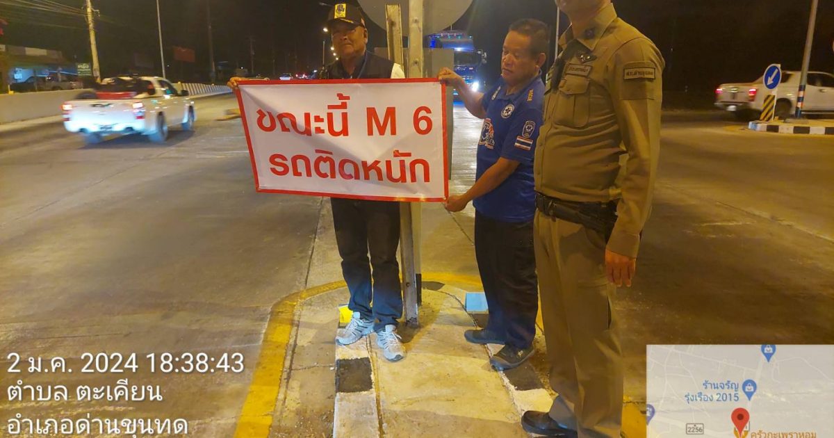 เวลา 19.10 น. พ.ต.อ.เสกสรร บุญยรัชนิกร ผกก.สภ.ด่านขุนทด สั่งการให้ พ.ต.ท.อาคม ชุดขุนทด รองว ผกก.ป.สภ.ด่านขุนทด พร้อมด้วย จราจร ตรวจเยี่ยมชุดหน่วยกู้ชีพ อบต.ตะเคียน มอบเครื่องดื่ม และติดป้ายประชาสัมพันธ์ รถติดทางด่วน M6 ให้หลีกเลี่ยงการใช้เส้นทางดังกล่าว