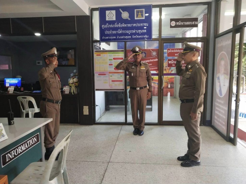 พ.ต.อ.ฉัฐวัชร วงศ์วาสน์ รอง ผบก.ภ.จว.นครราชสีมา เดินทางมาตรวจเยี่ยม สภ.ด่านขุนทด พบ พ.ต.อ.เสกสรร บุญญรัชนิกร ผกก.สภ.ด่านขุนทด พร้อมกำลัง อยู่ปฏิบัติหน้าที่รายงานเหตุการณ์ปกติ