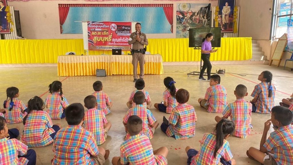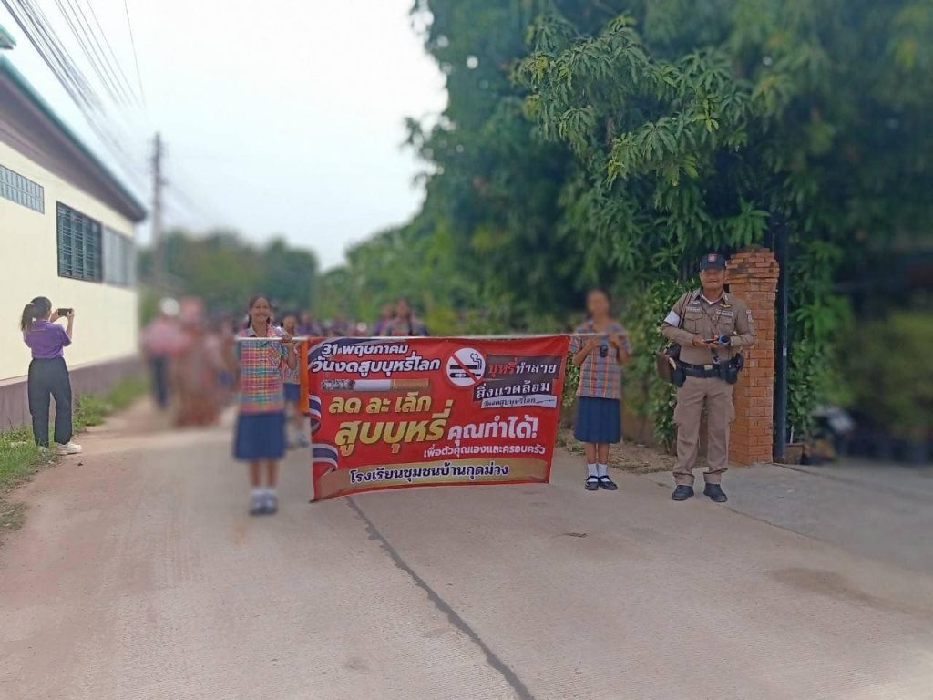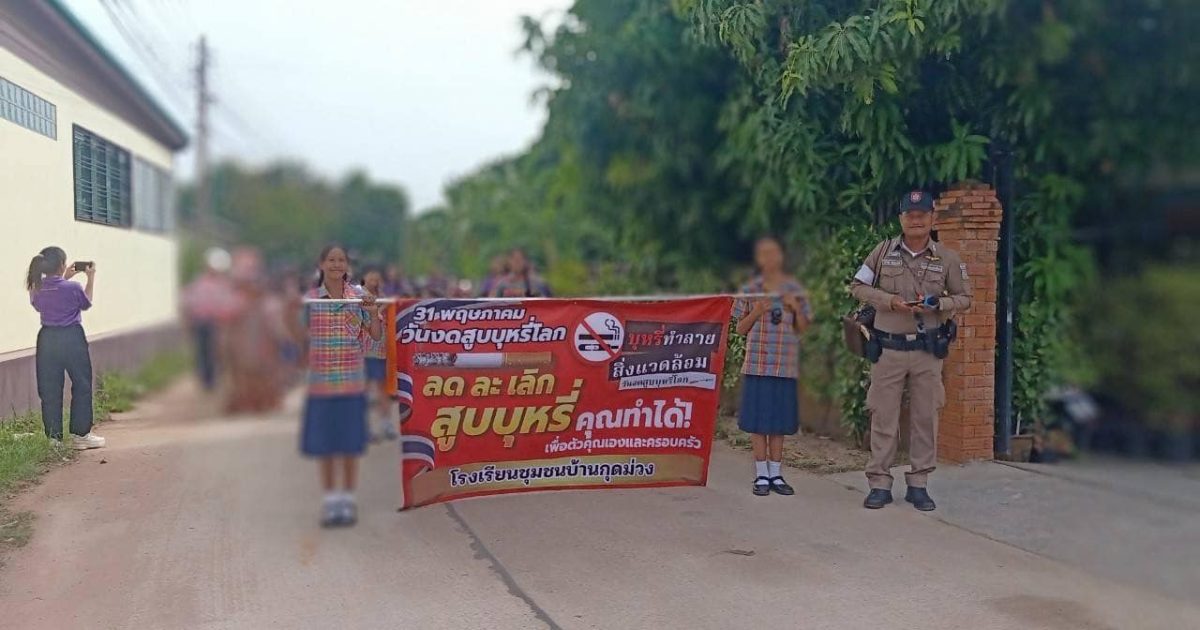 ครูแดร์ สอนนักเรียนวันงดสูบบุหรี่โลก 2024-05-31 โดย admin / ข่าวประชาสัมพันธ์,ข่าวกิจกรรม,ข่าวประชาสัมพันธ์ วันนี้ 31 พฤษภาคม 2567 ภายใต้การอำนวยการของ พันตำรวจเอกเสกสรร บุญยรัชนิกร ผู้กำกับการสถานีตำรวจภูธรด่านขุนทด มอบหมายให้ดาบตำรวจวิชาญ ชุ่มขุนทด ครูตำรวจแดร์ ร่วมกิจกรรมเดินรณรงค์ เนื่องในวันต่อต้านบุหรี่โลกและ เป็นวิทยากรบรรยายให้ความรู้ถึงโทษภัยของบุหรี่และสารเสพติดให้กับนักเรียนโรงเรียนชุมชนบ้านกุดม่วงได้รับความร่วมมือจากคณะอาจารย์และนักเรียนเป็นอย่างดี