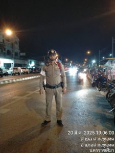 วันที่ 20 มีนาคม 2568 เวลา 19.00 น. ร.ต.ท.สมคิด แอ้นชัยภูมิ ร้อยเวร 60 ออกตรวจการจราจรบริเวณ ตลาดศาลเจ้า กวดขันการจอดรถในลักษณะกีดขวางการจราจร ในช่วงเวลาเร่งด่วน ผู้ใช้จำนวนมาก