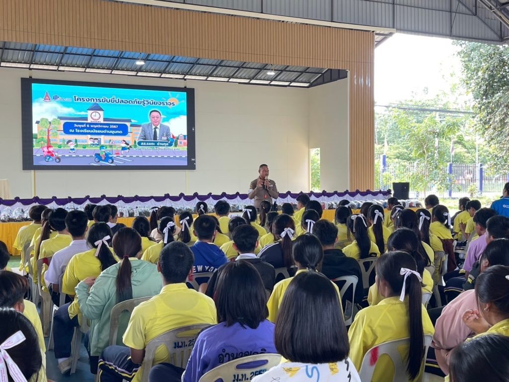 วันนี้ (6 พ.ย.67) เวลา 09.00-12.00 น.โดยการนำของ พ.ต.อ.เสกสรร บุญยรัชนิกร ผกก.สภ.ด่านขุนทด ร่วมกับนายรชตะ ด่านกุล สมาชิกสภาผู้แทนราษฎรจังหวัดนครราชสีมา เขต15 ดำเนินโครงการ “ขับขี่ปลอดภัย รู้วินัยจราจร“ เพื่อให้ความรู้แก่นักเรียนโรงเรียนมัธยมด่านขุนทด ดังนี้