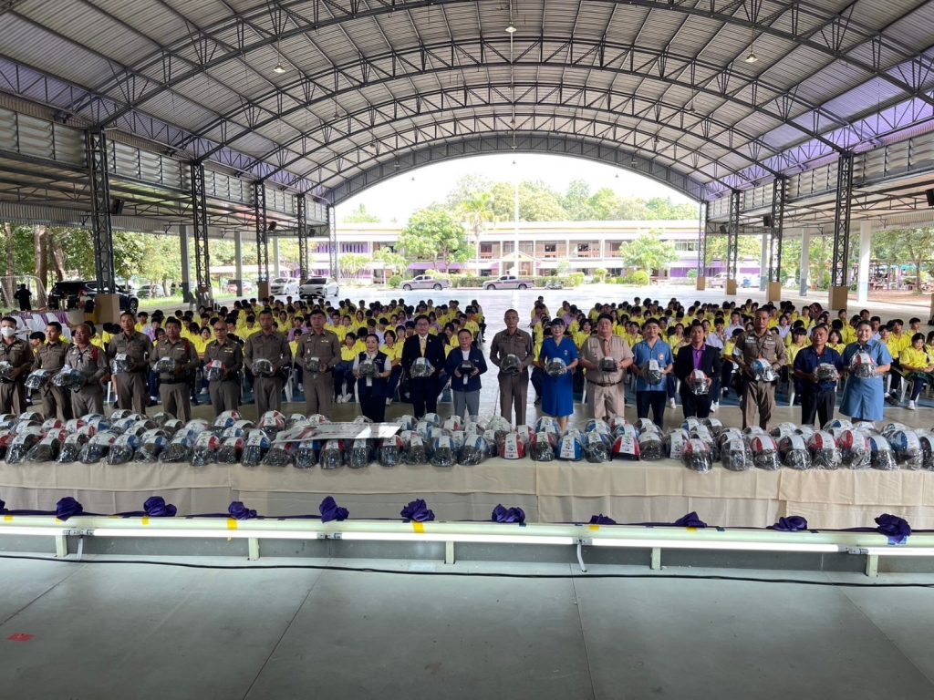 ก่อนเสร็จสิ้นการอบรมได้มอบหมวกกันน็อคให้ผู้เข้ารับการอบรมเพื่อการขับขี่ที่ถูกต้องตามกฎหมาย