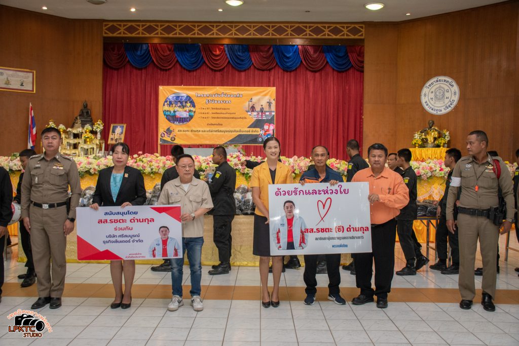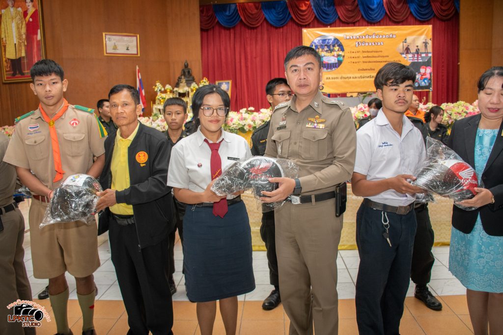 ก่อนเสร็จสิ้นการอบรมได้มอบหมวกกันน็อคและเสื้อให้ผู้เข้ารับการอบรมเพื่อการขับขี่ที่ถูกต้องตามกฎหมาย