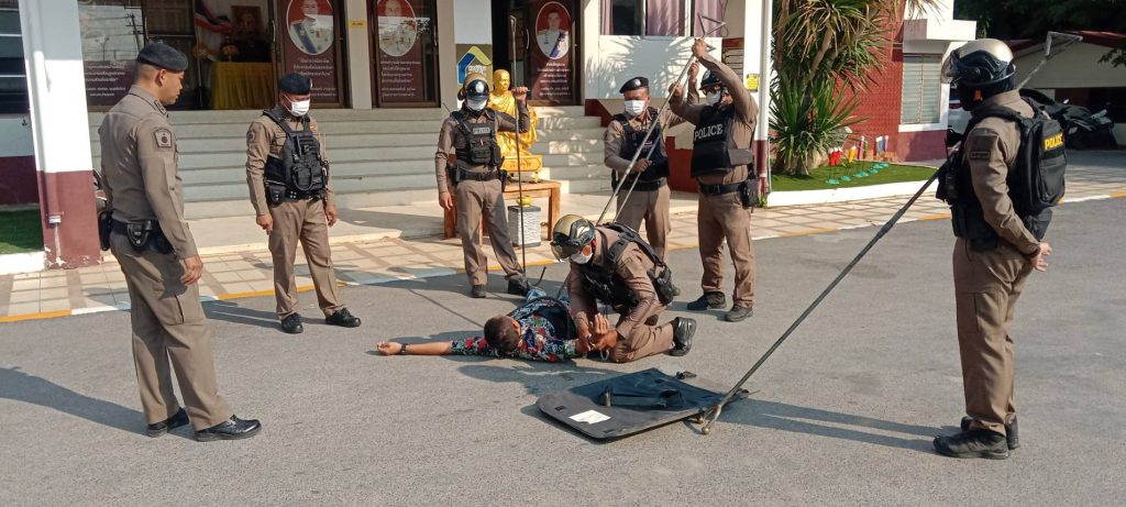 งานป้องกันปราบปราม ฝึกระงับเหตุควบคุมบุคคลวิกลจริต 2024-04-30 โดย admin / ข่าวประชาสัมพันธ์,ข่าวกิจกรรม,ข่าวประชาสัมพันธ์ วันที่ 30 เม.ย. 2567 งานป้องกันปราบปราม โดย พ.ต.ต.วิษณุกร ยังจันอินทร์ สวป.สภ.ด่านขุนทด พร้อมด้วยกำลัง สายตรวจรถยนต์ สายตรวจรถจักรยานยนต์ ทำการซักซ้อมการใช้อุปกรณ์ช่วยเหลือ ( ไม้ง่าม ) ในการเข้าระงับเหตุบุคคลวิกลจริต เพื่อช่วยในการป้องกันอันตรายแก่ประชาชนและเจ้าหน้าที่ตำรวจ
