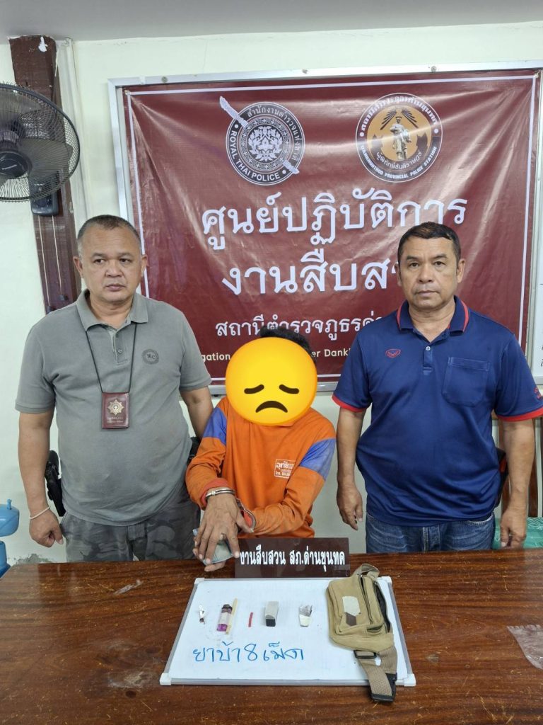 วันที่ 14 ก.พ. 2568 พ.ต.ท.วิรัตน์ จันทร์อินทร์ รอง ผกก.สส.สภ.ด่านขุนทด พร้อมด้วยงานสืบสวน ร่วมกันจับกุมผู้ต้องหาชาย 1 ราย ในข้อหา มียาเสพติดให้โทษประเภท 1 ( ยาบ้า หรือ เมทแอมเฟตามีน ) ไว้ในครอบครอง โดยผิดกฎหมาย , เสพยาเสพติดให้โทษประเภท 1 ( ยาบ้า หรือ เมทแอมเฟตามีน ) โดยผิดกฎหมาย ของกลางยาบ้า 8 เม็ด