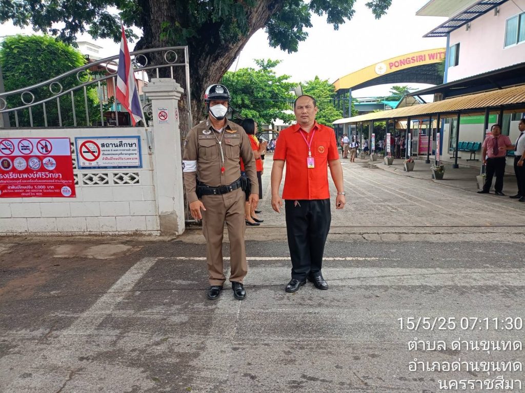 อำนวยความสะดวกการจราจรหน้าสถานศึกษาและในเขตเทศบาลตำบลด่านขุนทด ช่วงชั่วโมงเร่งด่วน การจราจรเคลื่อนตัวได้ดีตามสัญญาณไฟและสัญญาณมือ