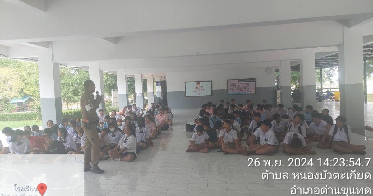 วันที่ 26 พฤศจิกายน 2567 ภายใต้การอำนวยการของ พ.ต.อ.เสกสรร บุญรัชนิกร มอบหมายให้ ชุด ชมส.สภ.ด่านขุนทด นำโดย ร.ต.อ.ถนอม ทรงจันทึก รองสว(ป.)ด่านขุนทด และ ด.ต.วิชาญ ชุ่มขุนทด ร่วมเป็นวิทยากรให้ความรู้เกี่ยวกับพิษภัยของยาเสพติด การป้องกัน ตนเองจากโลกออนไลน์ ให้กับ นักเรียนโรงเรียนหนองบัวละครวิทยา ได้รับความร่วมมือจากคณะครูอาจารย์และนักเรียนเป็นอย่างดี