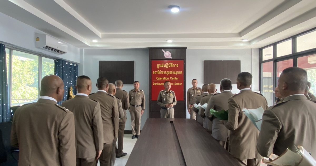 พ.ต.อ.เสกสรร บุญยรัชนิกร ผกก.สภ.ด่านขุนทด พร้อมหัวหน้างานแต่ละสายงานและข้าราชการตำรวจ สภ.ด่านขุนทด ร่วมแสดงความยินดีประดับยศข้าราชการตำรวจที่เลื่อนยศจาก ร.ต.ท.เป็น ร.ต.อ. จำนวน 3 นาย ร.ต.ต.เป็น ร.ต.ท. จำนวน 8 นาย ได้กล่าวให้โอวาท มอบดอกไม้และถ่ายภาพหมู่เป็นที่ระลึก