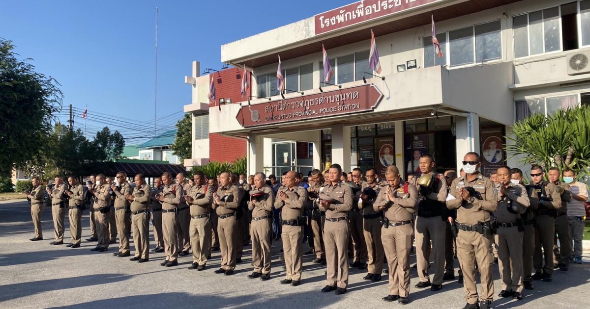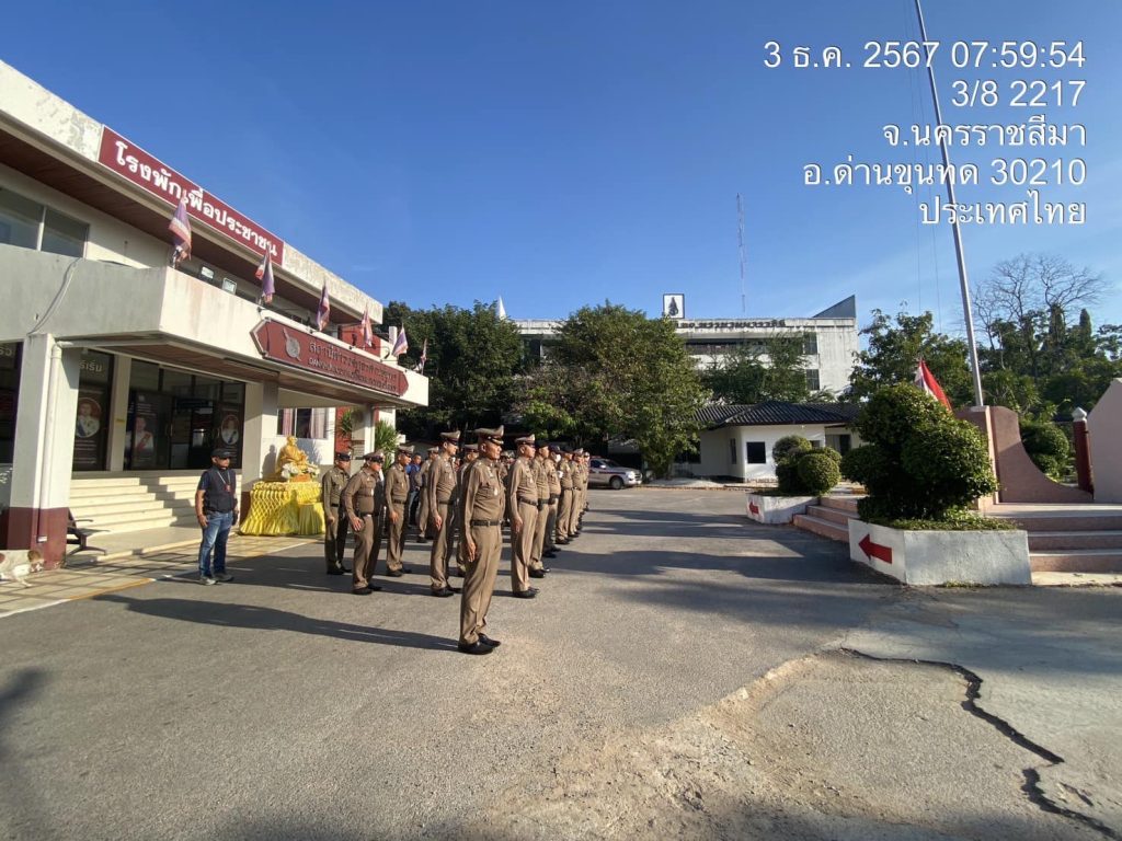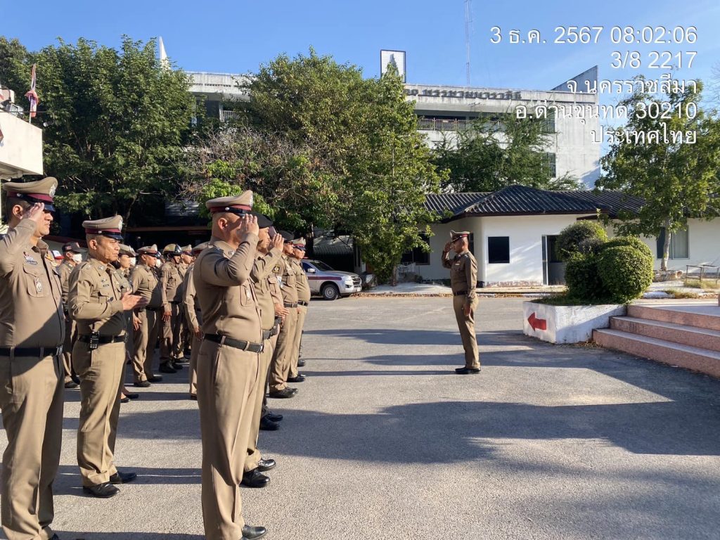 ผกก. นำข้าราชการตำรวจ เข้าแถวเคารพธงชาติ 2024-12-03 โดย admin / ข่าวขับเคลื่อนการดำเนินการ ITA วันที่ 3 ธันวาคม 2567 เวลา 08.00 น. พ.ต.อ.เสกสรร บัญยรัชนิกร ผกก.สภ.ด่านขุนทด นำข้าราชการตำรวจ ประจำสถานีตำรวจภูธรด่านขุนทด เคารพธงชาติ,สวดมนต์,กล่าวอุดมคติตำรวจ ชี้แจงข้อราชการ ตรวจทรงผม,เครื่องแต่งกาย ก่อนปล่อยออกปฎิบัติหน้าที่