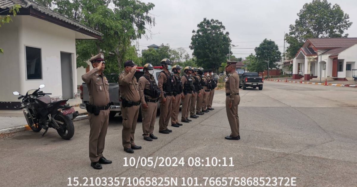 นำข้าราชการตำรวจ สภ.ด่านขุนทด เคารพธงชาติ สวดมนต์,กล่าวอุดมคติ