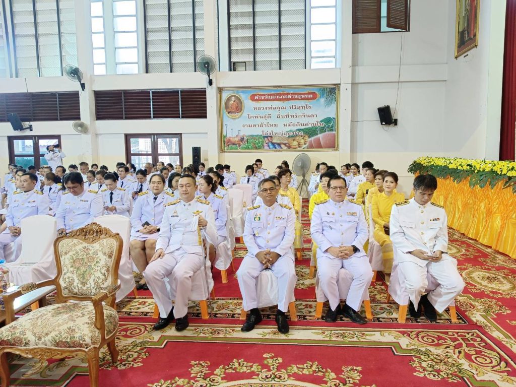 -ภายใต้การอำนวยการของพ.ต.อ.เสกสรร บุญยรัชนิกร ผกก.สภ.ด่านขุนทด มอบหมายให้ พ.ต.ท.สุวรรณ เต็งตระกูลเจริญ รอง ผกก (สอบสวน)สภ.ด่านขุนทด ร่วมพิธีสวดพระพุทธมนต์ พิธีตักบาตรข้าวสารอาหารแห้งถวายเป็นพระราชกุศลและพิธีวางพวงมาลาเนื่องในวันนวมินทรมหาราช 13 ตุลาคม 2568 ณ.บริเวณหอประชุมอำเภอด่านขุนทดและบริเวณหน้าที่ว่าการอำเภอด่านขุนทด โดยมี นายศักรินทร์ เสมหิรัญ นายอำเภอด่านขุนทด เป็นประธานในพิธีฯ