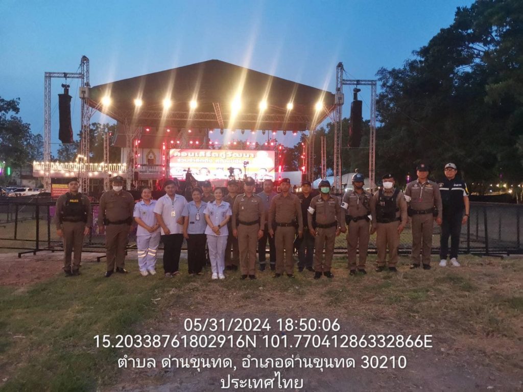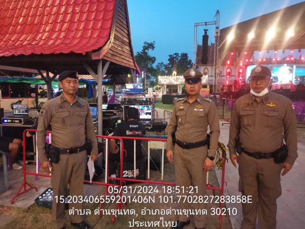พ.ต.ท.อาคม ชุดขุนทด รอง ผกก.ป.สภ.ด่านขุนทด พ.ต.ต.วิษณุกร ยังจันอินทร์ สวป.สภ.ด่านขุนทด จว.นครราชสีมา ปล่อยแถว ชี้แจงภารกิจรักษาความปลอดภัยการจัดงานแสดงดนตรี คอนเสริ์ตภู่วัฒนา รำลึกถึงคุณแม่ซุยฮัว แซ่ภู่ ณ วัดศาลาลอย ต.ด่านขุนทด อ.ด่านขุนทด จว.นครราชสีมา โดยได้กำชับให้ปฏิบัติตามมาตรการและแนวทางป้องกันเหตุทะเลาะวิวาท ดังนี้