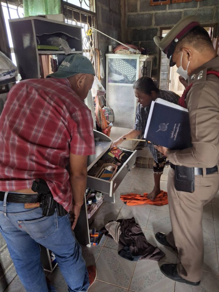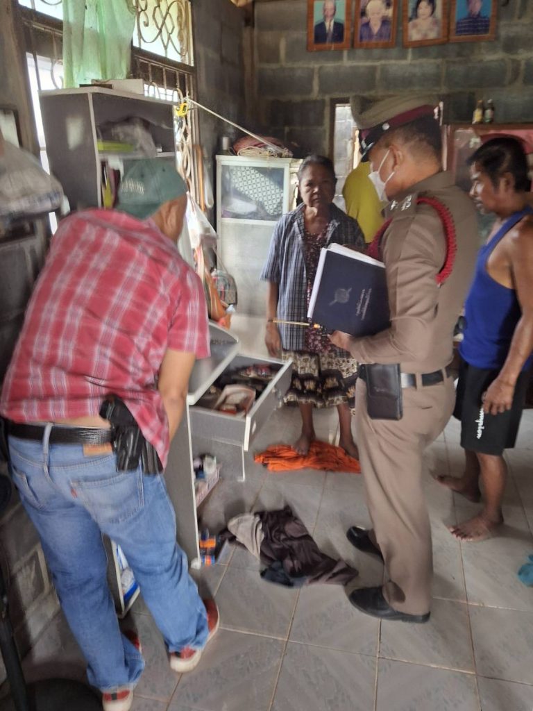 วันนี้ ( ๒๘ ต.ค. ๒๕๖๗ ) เวลา ๑๑.๐๐ น.พ.ต.ต.ปรีชา มีผิว สว(สอบสวน) ฯ พงส.เวร ขณะปฏิบัติหน้าที่พนักงานสอบสวนเวร ได้มีนายงบุญเรือน มูลขุนทด อายุ ๖๒ ปี บ้านเลขที่ ๘๕ หมู่ที่ ๙ บ้านดงกระสังข์ ตำบล ตะเคียน อำเภอด่านขุนทด จังหวัดนครราชสีมา โทร ๐๘๓-๙๒๓๔๓๑๒ (ญาติ) แจ้งว่าเมื่อวันที่ ๒๖ ต.ค. ๒๕๖๗ เวลา ๑๔.๐๐ น. ตรวจสอบสร้อยคอทองคำหนัก ๑ เส้น น้ำหนัก ๒ สลึก ที่เก็บไว้ในเก๊ะโต๊ะเครื่องแป้ง ไม่มีว่าผู้ใดเอาไป ผู้แจ้งตรวจสอบพบสร้อยคอทองคำดังกล่าวเมื่อวันที่ ๒๕ ต.ค. ๒๕๖๗ เวลา ๐๙.๐๐ น. บ้านพักของผู้แจ้งอยู่ด้วยกัน ๒ คนกับสามีนายวิไล กล่อมสูงเนิน อายุ ๕๕ ปี ( ป่วยพิการผ่าตัดสมอง ) ผู้แจ้งไม่ทราบว่าผู้ใดเอาไป จึงเดินทางเข้าแจ้งความต่อพนักงานสอบสวน เพื่อทำการสืบสวนหาตัวคนร้ายมาดำเนินคดีตามกฎหมาย