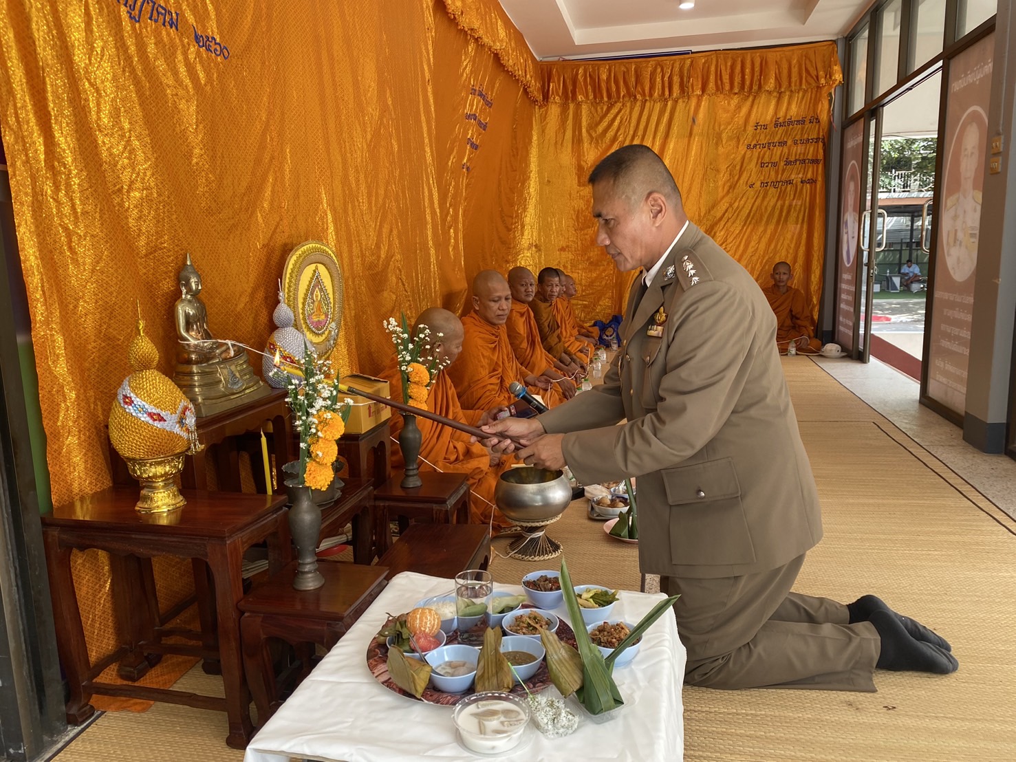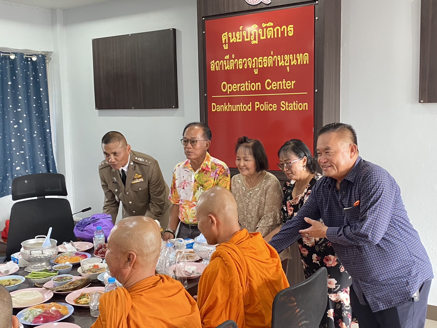 พ.ต.อ.เสกสรร บุญยรัชนิกร ผกก.สภ.ด่านขุนทด พร้อมด้วยข้าราชการตำรวจ สภ.ด่านขุนทด ร่วมกันเคารพธงชาติ สวดมนต์ไหว้พระ กล่าวอุดมคติตำรวจ