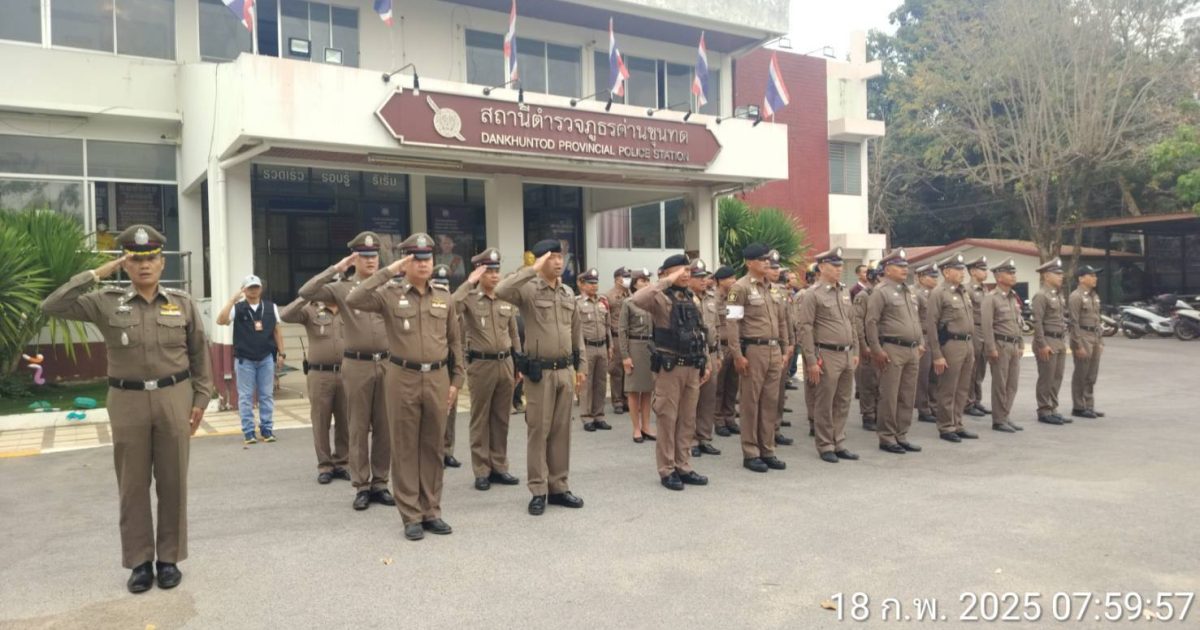 วันที่ 18 ก.พ. 2568 เวลา 08.00 น. พ.ต.อ.เสกสรร บุญยรัชนิกร ผกก.สภ.ด่านขุนทด พร้อมด้วยข้าราชการตำรวจ สภ.ด่านขุนทด เข้าแถว เคารพธงชาติ สวดมนต์ไหว้พระ กล่าวอุดมคติตำรวจ จากนั้นได้กำชับการปฏิบัติหน้าที่แก่ข้าราชการตำรวจแต่ละแผนกงาน ตามนโยบายของสำนักงานตำรวจแห่งชาติ และ กำชับการปฏิบัติหน้าที่ของทุกแผนกงาน ห้ามมิให้มีการเรียกรับสินบน กระทำการทุจริตในการปฏิบัติหน้าที่โดยเด็ดขาด