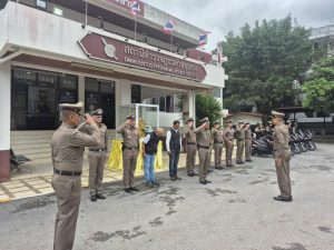 วันที่ 4 พ.ย. 2568 พล.ต.ต.ณรงค์ศักดิ์ พรหมทา ผบก.ภ.จว.นครราชสีมา ตรวจเยี่ยม สภ.ด่านขุนทด พบ พ.ต.อ.เสกสรร บุญยรัชนิกร ผกก.สภ.ด่านขุนทด พร้อมข้าราชการตำรวจทุกสายงานอยู่ปฏิบัติหน้าที่ ได้มอบข้อสั่งการการปฏิบัติ ตามนโยบายของสำนักงานตำรวจแห่งชาติ