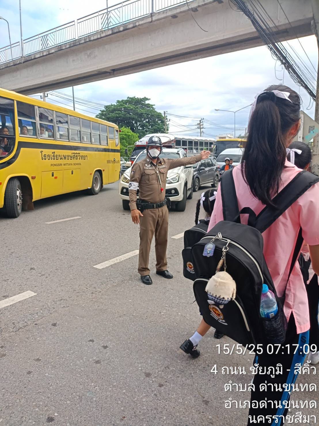 วันที่ 15 พ.ค.2568 เวลา 07.00 น. ร.ต.ท.ฉลวย สมกลาง ขุนทด 60 ,จราจร อำนวยความสะดวกการจราจรหน้าสถานศึก