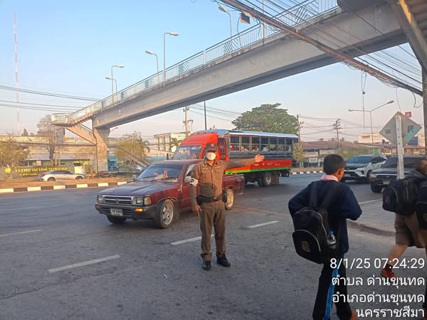 วันนี้ ( 8 ม.ค. 2568 ) ร.ต.ท.ฉลวย สมกลาง ขุนทด 60 , ชุดจราจร อำนวยความสะดวกการจราจร หน้าสถานศึกษาและ